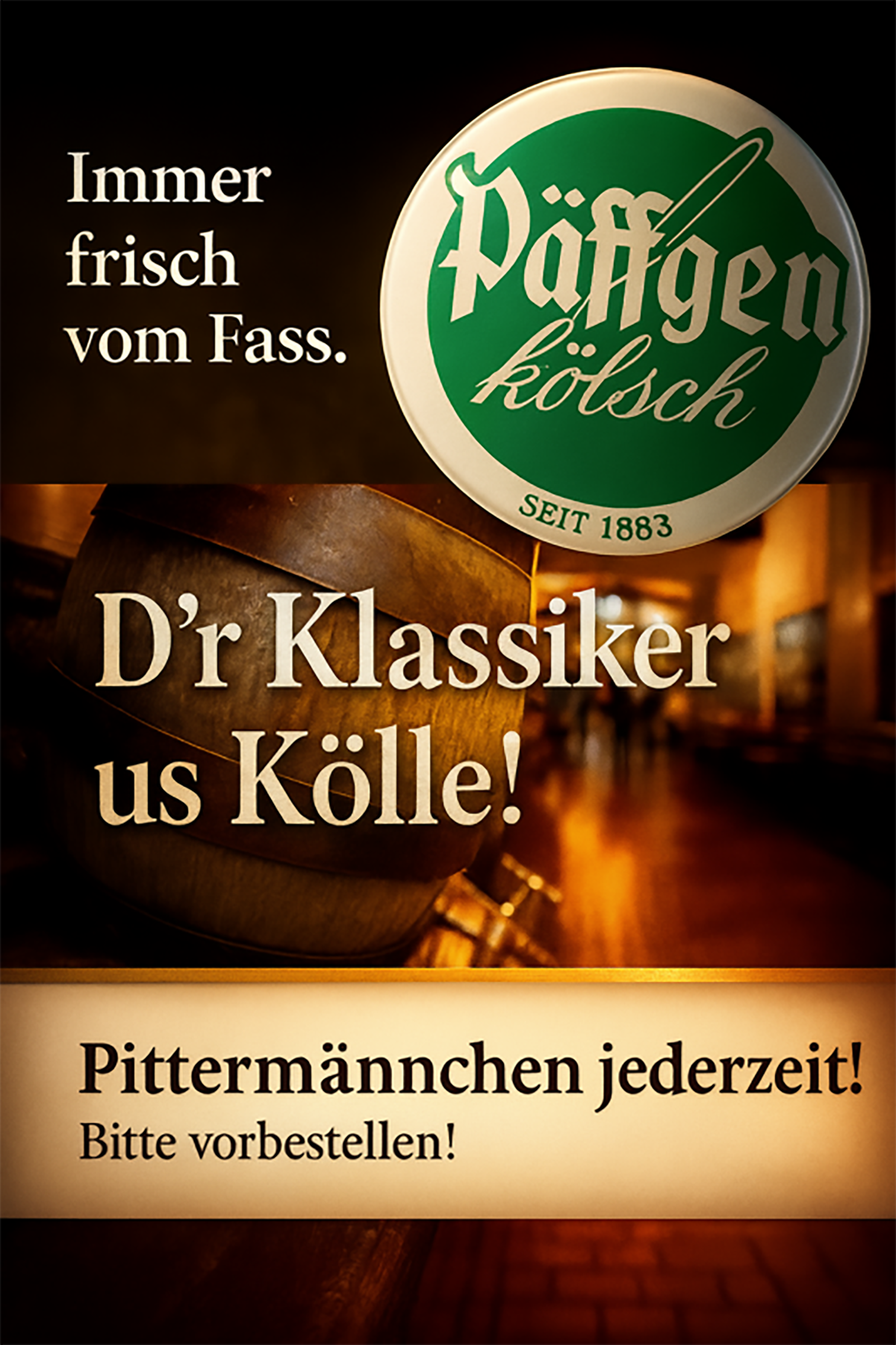 Taucht ein in die lebendige Atmosphäre unserer traditionsreichen Kneipe und erlebt kölsche Gemütlichkeit wie es nirgendwo sonst gibt.